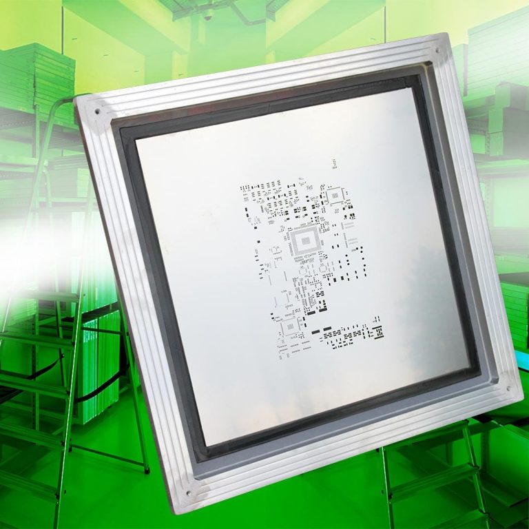 Außerdem gibt es noch die Rahmenschablonen. Sie sind ältere Systeme die meisten nur noch bei sehr großen Schablonen zum Einsatz kommen. Wir fertigen diese SMD Schablonen bis zu einer Länge von 1800mm. Diese Art von SMD Schablonen kommen meist bei Sonderanwendungen wie z. B. bei sehr langen LED Leiterplatten zum Einsatz.